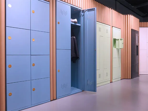 One of our key projects with CBRE in Amsterdam features circular and modular smart lockers made from recycled textiles through our collaboration with Planq. These lockers are electronically accessible and provide a secure, sustainable solution for employees to store their personal belongings.