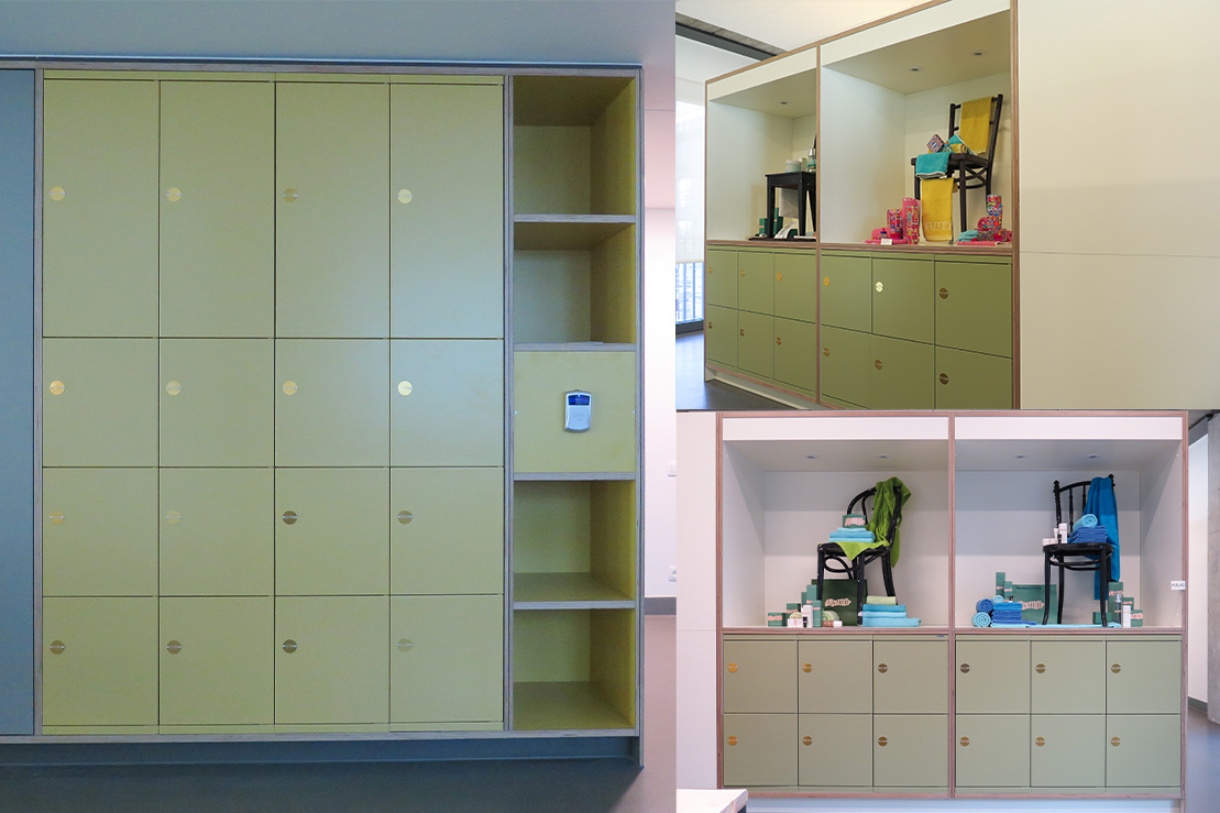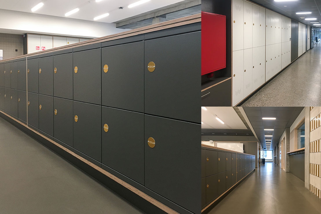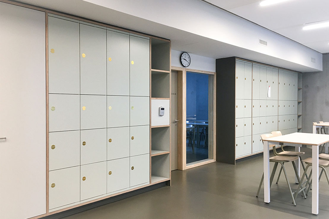 To ensure that the lockers blend seamlessly with the interior of Campus Cadix, each locker wall was encased in custom-made Birch Plywood enclosures. This integration allows the lockers to harmoniously complement the overall interior design of the campus.