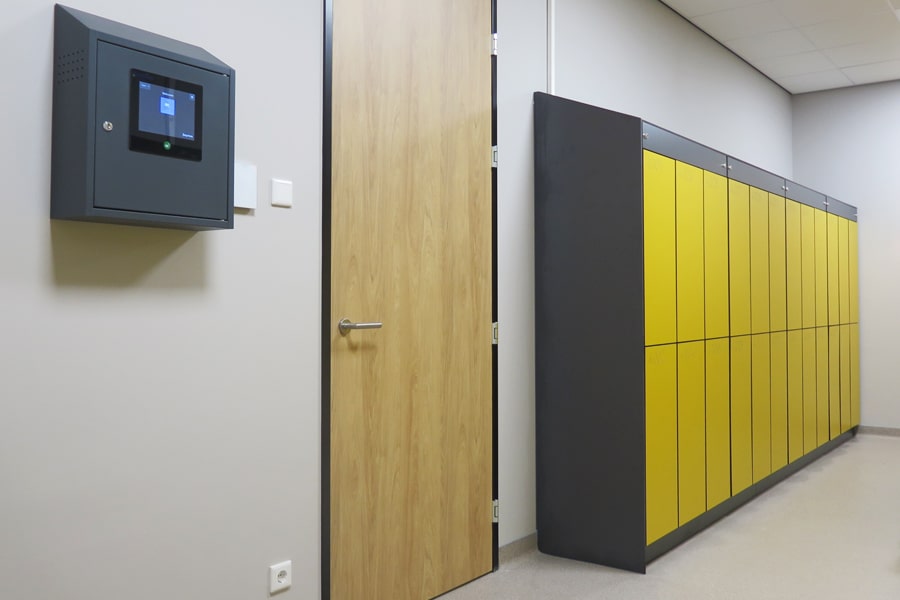 All of the lockers are connected with the Keynius locker system. Employees can gain access to the lockers with the 8 inch Keynius Smarty terminal or with their existing Mifare card. Through the Online portal, administrators can configure all the features and possibilities of the lockers, view realtime locker use, add new users and block lockers or users. These are just a few examples of what administrators can do, the Keynius locker software provides a lot more features for the administrator and users.