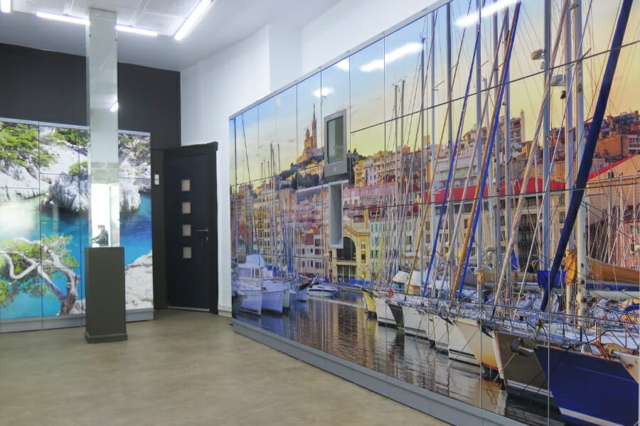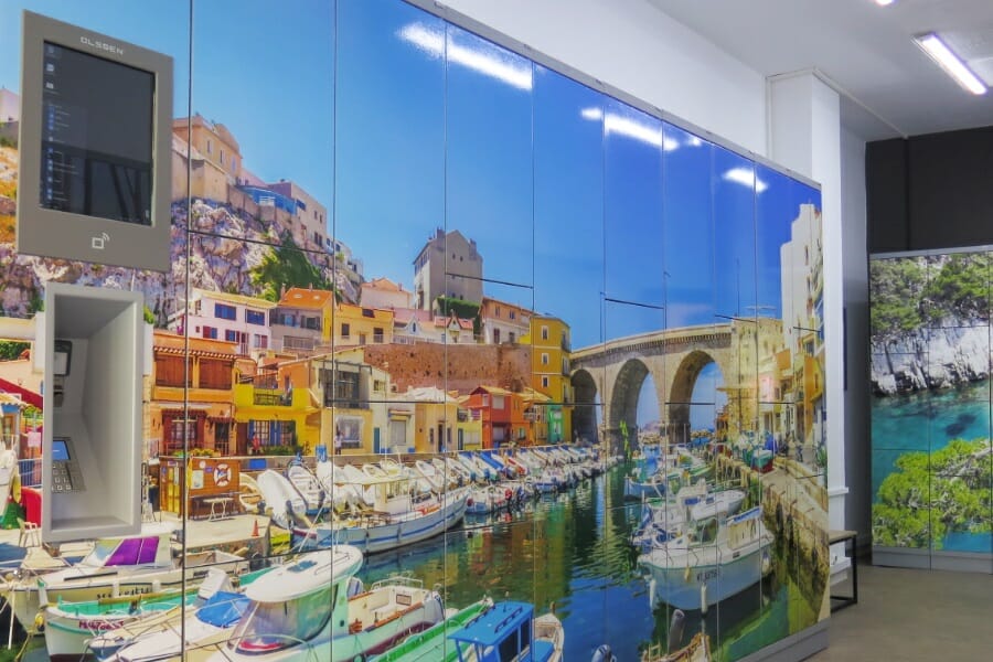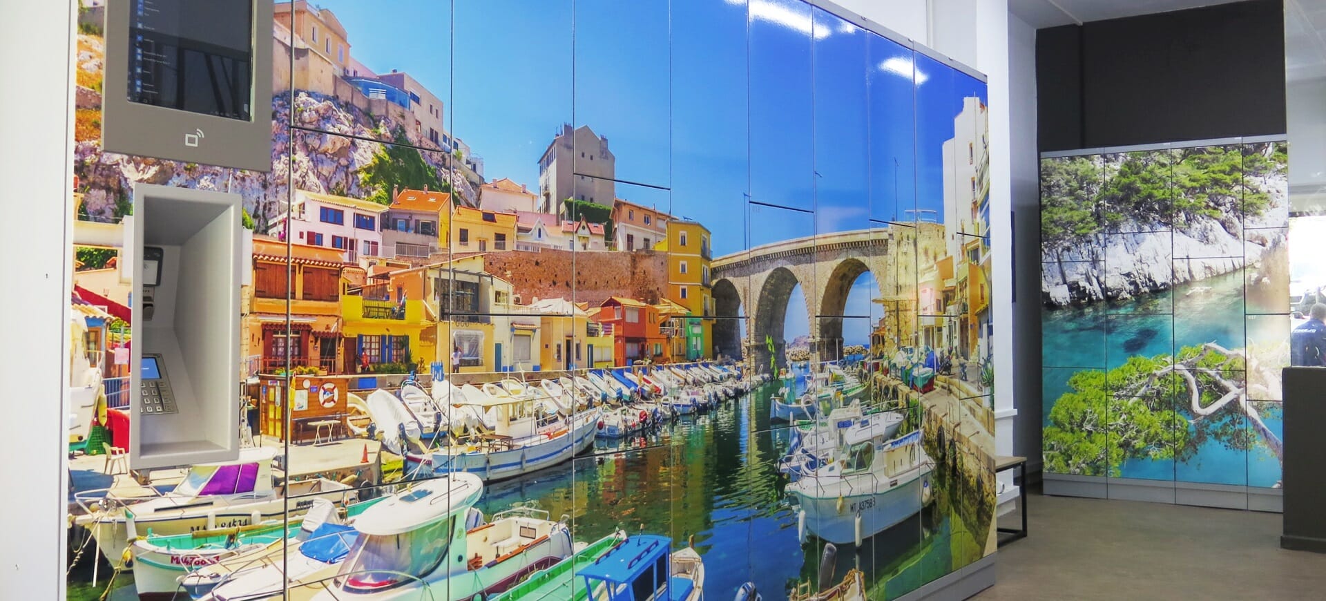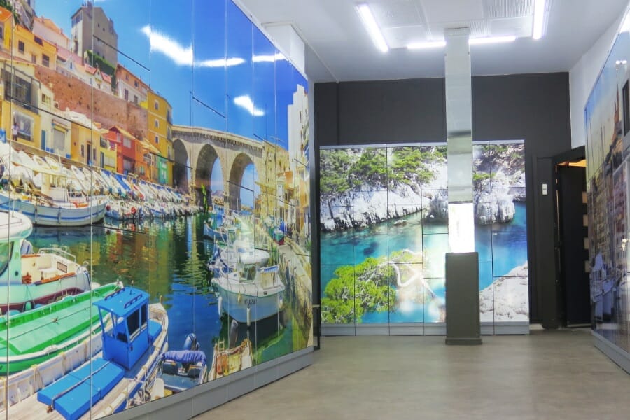 La Bag Mobile Marseille is a company that offers a storage service to tourists visiting Marseille. With the renewed electronic luggage lockers, tourists can safely store their suitcases, bags and other belongings for a self-determined period of time. This saves them from having to carry their bags around when they go out for activities in the city. The lockers are equipped with a cashless payment system. Users can indicate in advance for which period of time they wish to use a locker and must pay in advance. The locker walls are provided with a sticker print that gives the locker wall a modern and unique appearance.